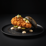 Hamburguesa de pollo crujiente con alioli picante y pepinillos