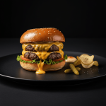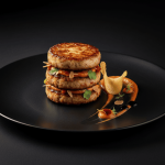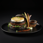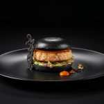 Hamburguesa de tinta de calamar con hamburguesa de gambas
