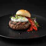 Hamburguesa de cordero con tzatziki y pimientos asados
