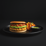 Hamburguesa vegana de lentejas con aguacate y relish de tomate