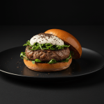 Hamburguesa de wagyu con mayonesa de trufa negra y rúcula