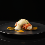 Cola de langosta con espuma de mantequilla y salsa de azafrán