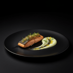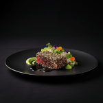 Lomo jugoso, crema herbácea y estallidos de limón.