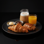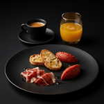 Huevos, salchichas, bacon, tomate a la plancha, champiñones y alubias. Con café o té.